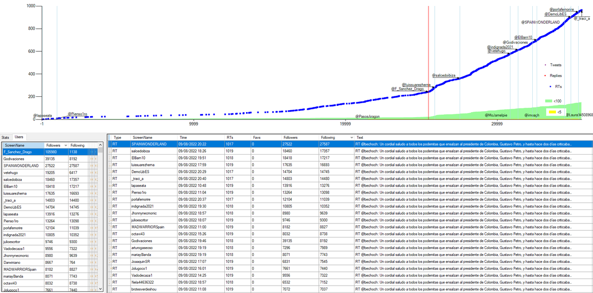A partir de ahí cuentas automatizadas (tabla derecha) dan RT, todas mismos patrones.