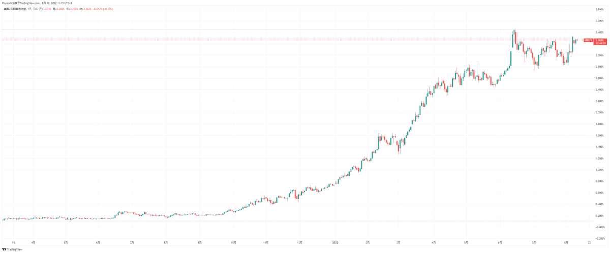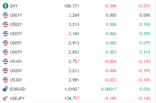 这就表明了资金如果想要提前离场也几乎不会出现本金的损失,尤其是对于很多大型的公司都会资金结构中购买美债。而从昨天美股开盘后到现在的走势来看,几乎看不到有资金进入美债的趋势,反而到现在美债的收益率还是在上升的状态。即便是两年期和三年期稍微有些下降,但相对上升数据来说就是杯水车薪。 Image
