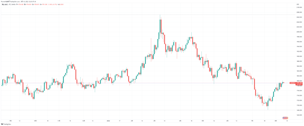 而资金的去向也是需要一直在关注的,如果进入贵金属市场来说,黄金是较好的标的,也是在宏观发生变化的时候的主要避险资产,比如俄乌冲突刚刚发生的时候就出现了黄金的价格大幅上涨。但从目前的情况来看,黄金并没有上升的情况,所以可以排除。 Image