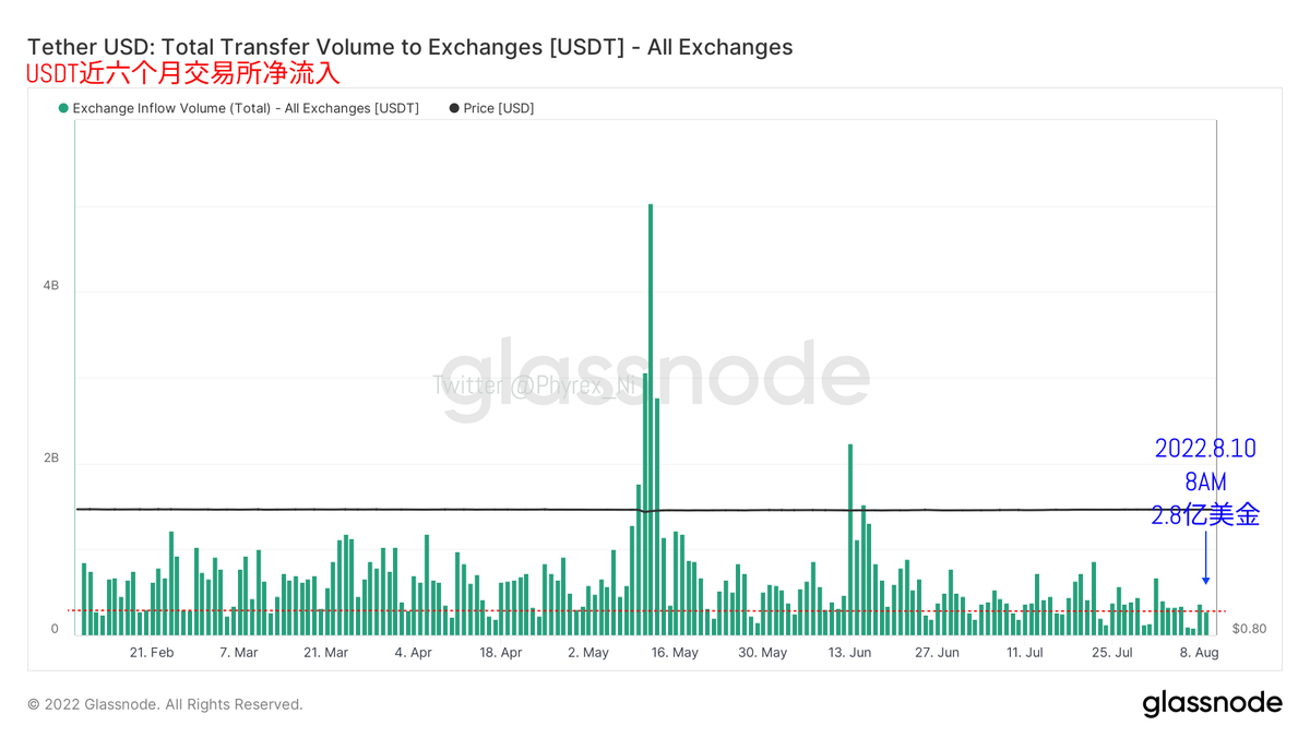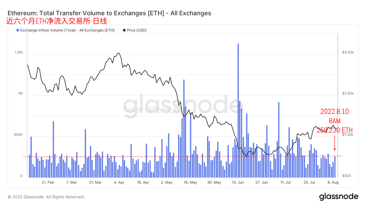 所以对应的 #BTC#ETH 的交易所转出量也呈现出下降的趋势,更多的筹码被滞留在交易所。这里也需要再次提醒一下对价格比较敏感的小伙伴,如果觉得价格的下跌是自己不能承受的,那么提前将筹码转入到交易所可能是比较好的方案,另外从上个月的通胀公布情况可以看到,产生宏观变化的问题是数据本身。