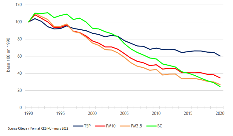 Et enfin pour les émissions de particules, dont les particules fines PM10 & PM2,5, qui ont baissé de 65% et de 73%.