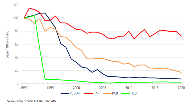 Idem pour les polluants organiques persistants. A l'exception des rejets d'Hydrocarbures Aromatiques Polycycliques (HAP), issus des feux de cheminés résidentiels.