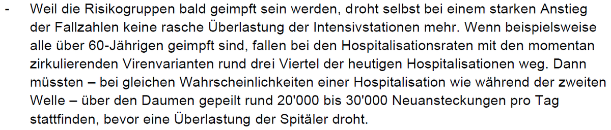 dass in Perioden mit hohen und exponentiell steigenden Fallzahlen eine solche Abwägung hinfällig werden kann, denn Massnahmen zur Verringerung der Ansteckungen sind auch aus Sicht der Privatwirtschaft mittelfristig vorteilhaft. (3/23)
