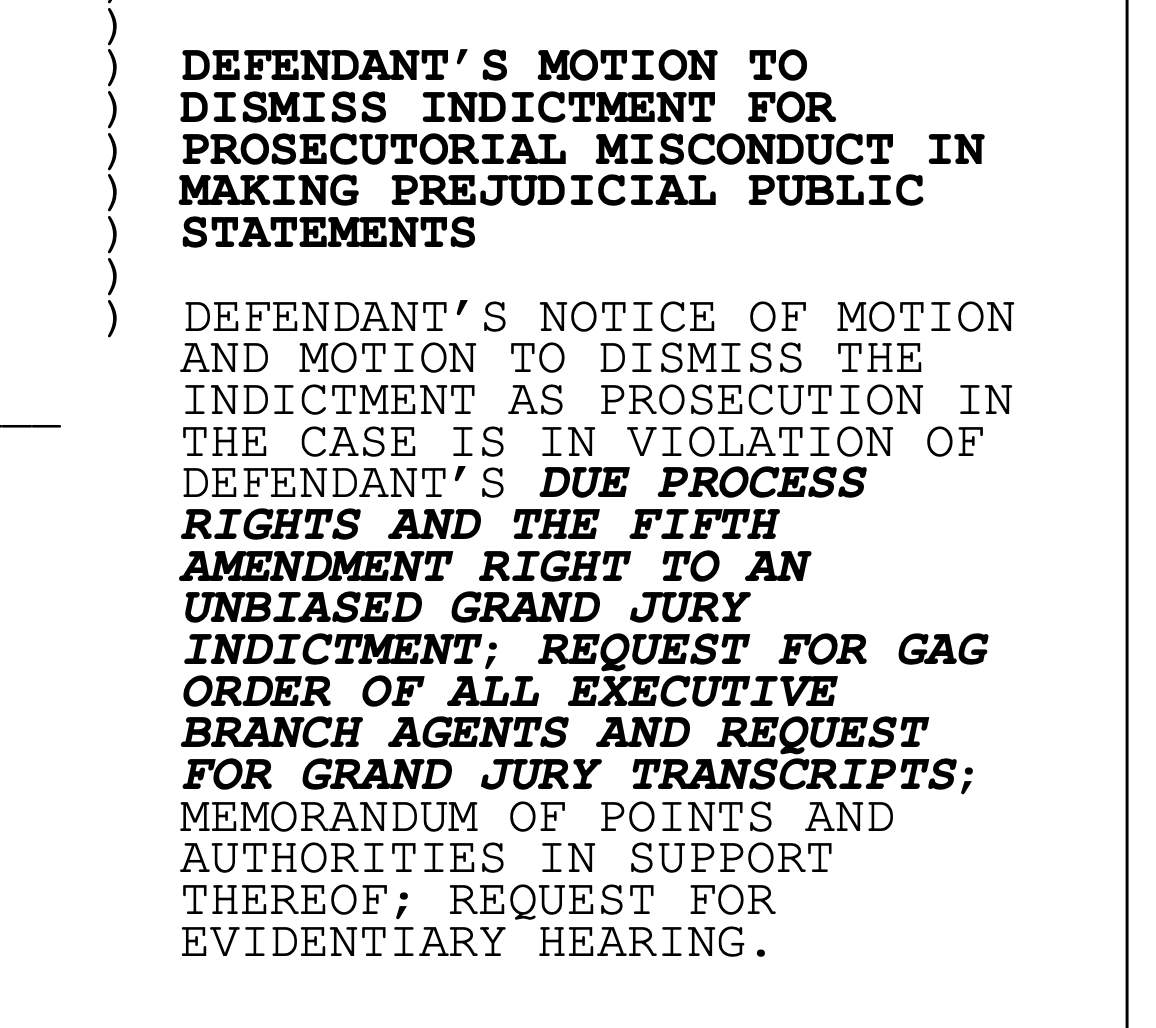 If the prosecution talks, defense lawyers file motions like these, which can lead to dismissal of the indictments.