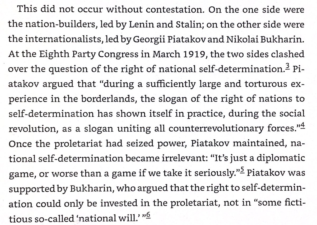 March 1919’s Eighth Party Congress featured dispute between those critical of national self-determination (Pyatakov & Buharin) and those who supported the democratic & defensive nationalism of the oppressed (Stalin and Lenin).