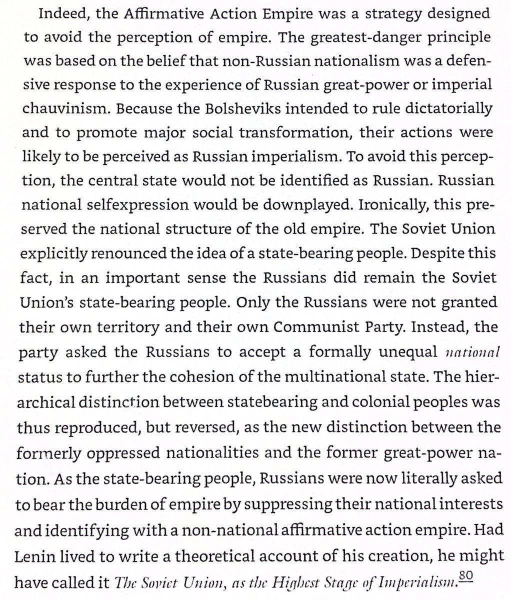 Thread with excerpts from “The Affirmative Action Empire: Nations and Nationalism in the Soviet Union, 1923-1939” by Terry Martin