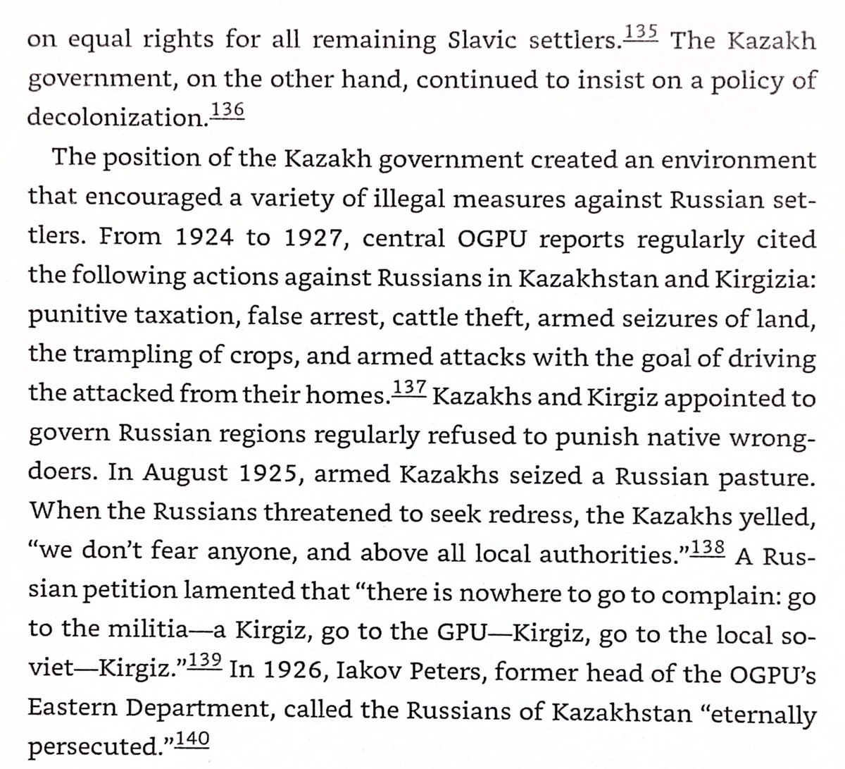 Soviet Kazah government was anti-Russian, and pushed for Kazahs to be given a privileged position in Kazahstan. Moscow saw that as a nationalist position & un-communist, & insisted on equal rights for all. Kazahs obeyed, but turned blind eye to anti-Russian crime.