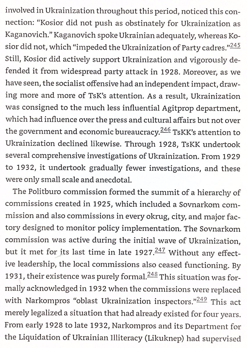 Union-level institutions started to ignore Ukrainization measures in 1928. By 1932 Union-level institutions in Ukraine had overwhelmingly reverted to Russian. Kosior’s replacement of Kaganovich as Ukraine’s party secretary accelerated this - Kosior couldn’t speak Ukrainian.