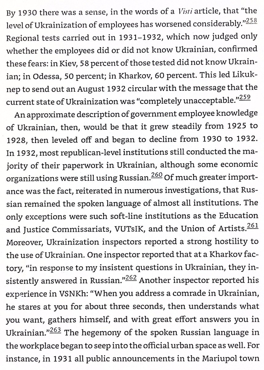Stalin declared that debate over Russian chauvinism & local nationalism was pointless & should be decided on individual basis in relation to state security in January 1934. Odessa, Lugansk, & Donetsk quickly switched back to using Russian after Ukrainization apparatus was purged.