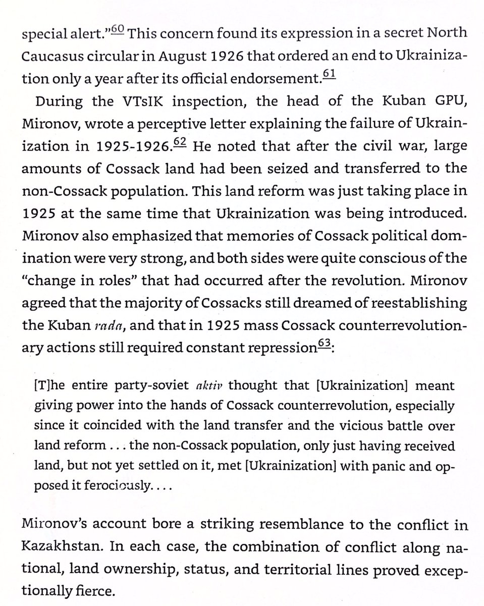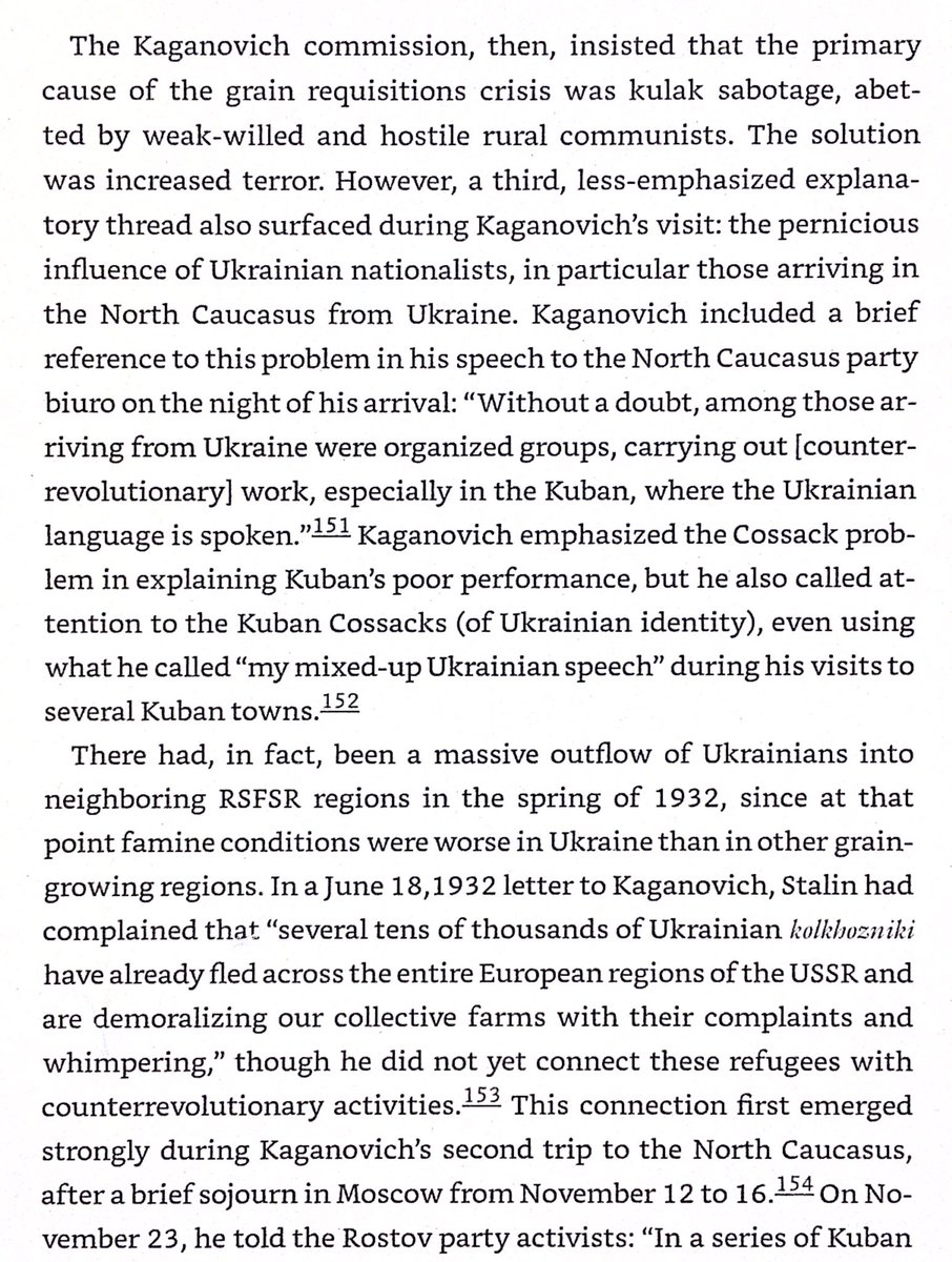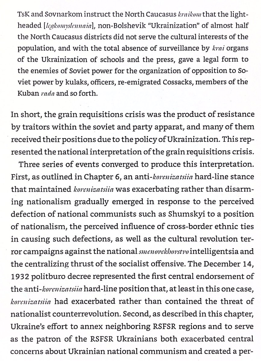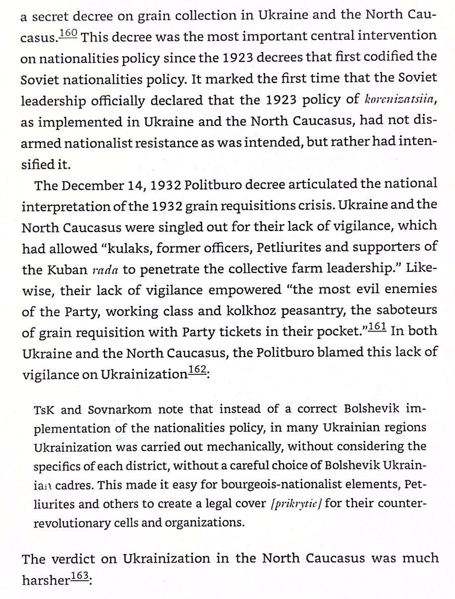 The Soviet government’s turn against indigenization in Ukraine & the Kuban happened in 1932 after the failures of collectivization led to protests & revolts. Failures were chalked up to nationalist/reactionary/foreign sabotage & subversion.