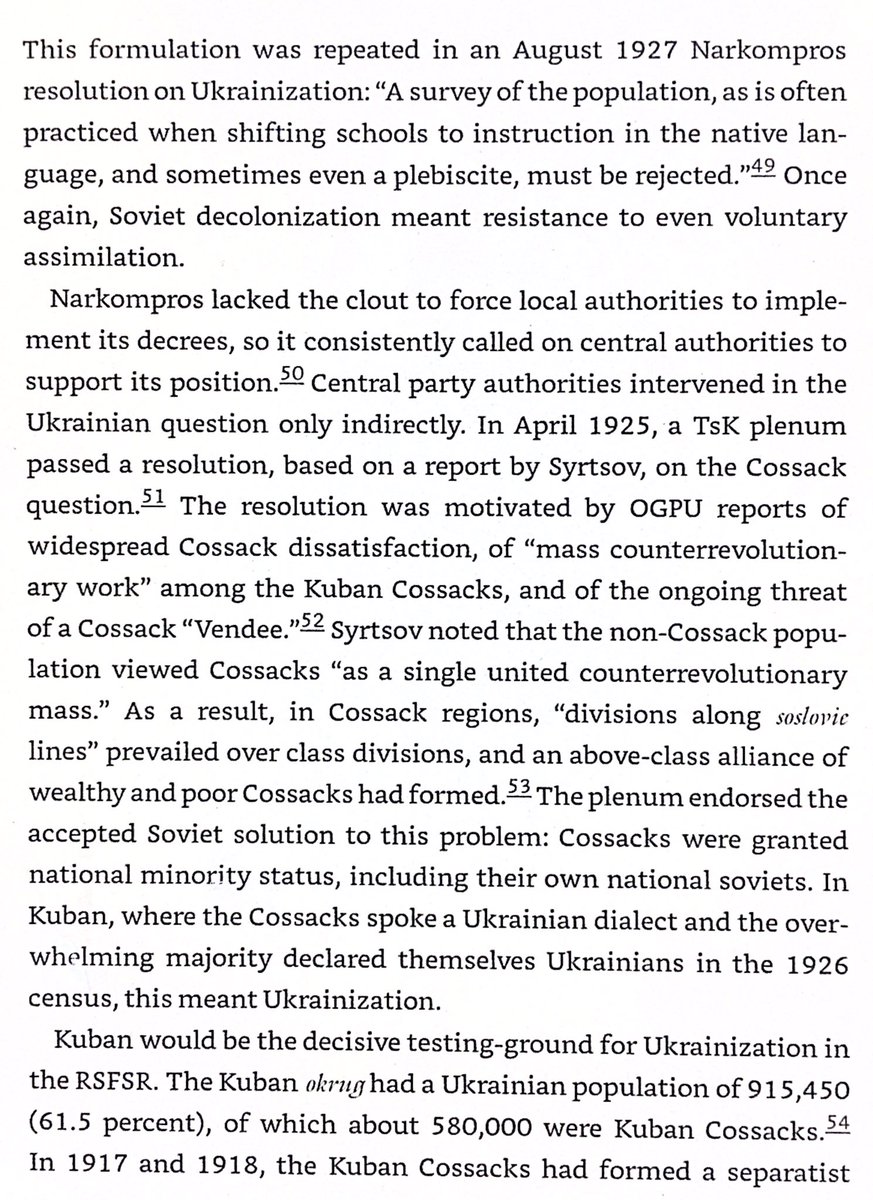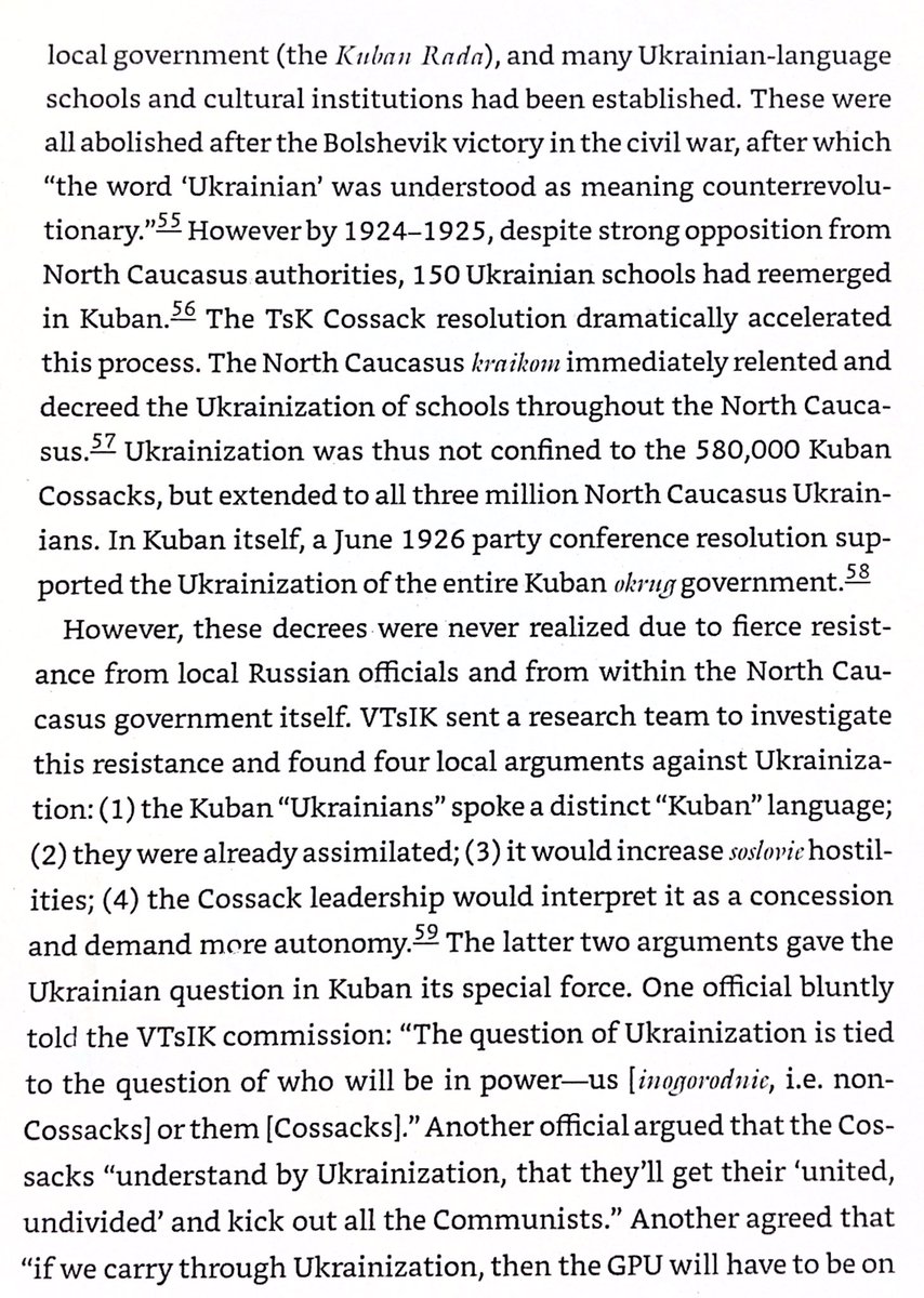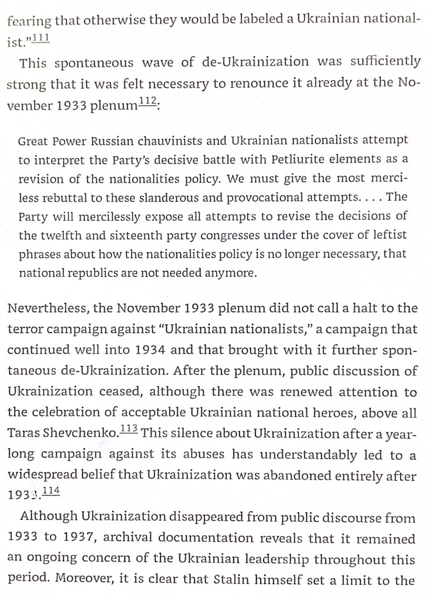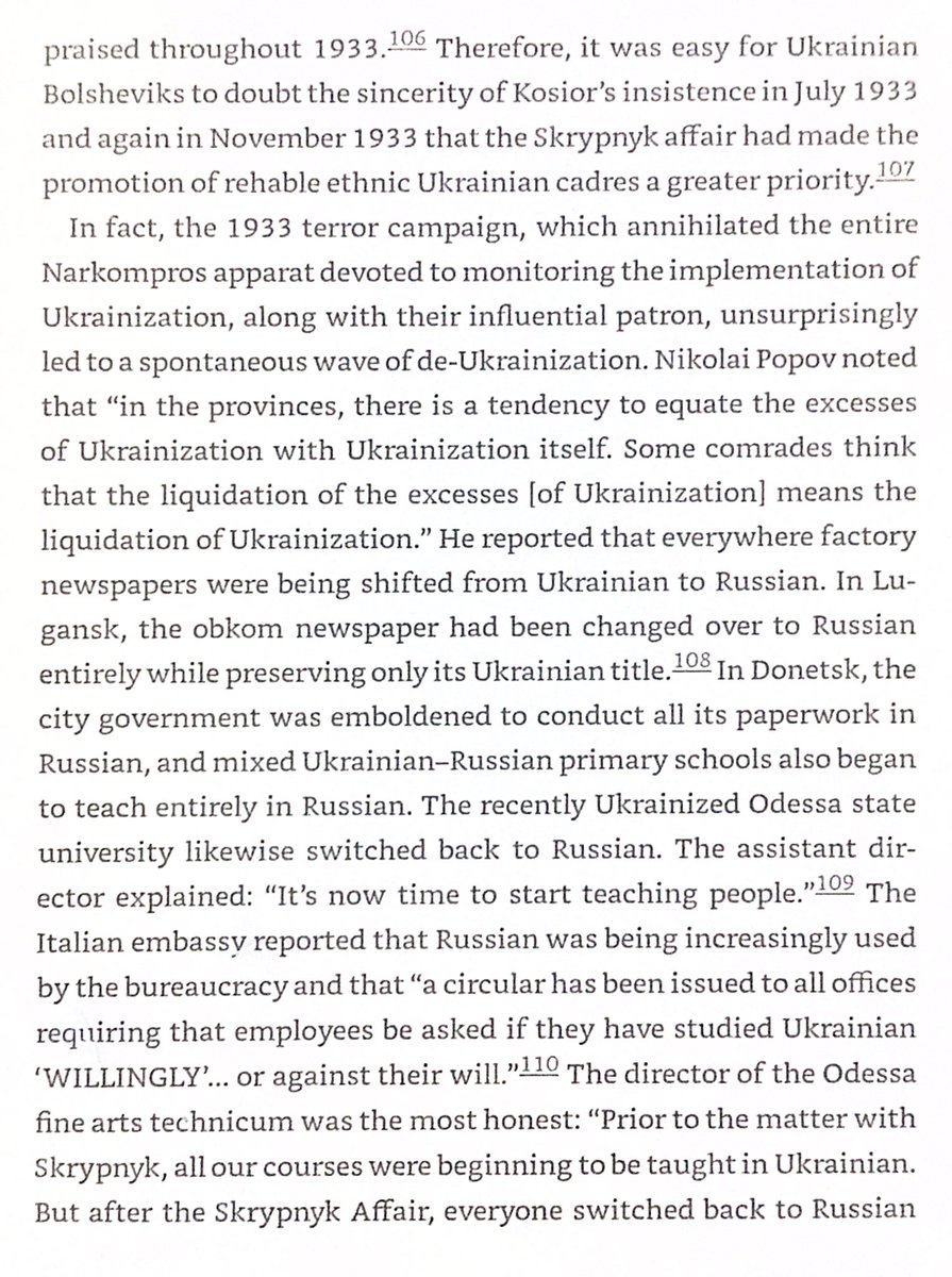 The Soviet government’s turn against indigenization in Ukraine & the Kuban happened in 1932 after the failures of collectivization led to protests & revolts. Failures were chalked up to nationalist/reactionary/foreign sabotage & subversion.