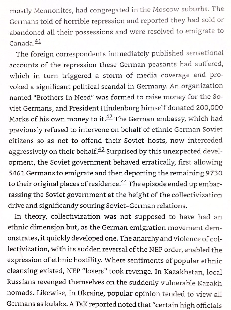 Collectivization had an ethnic element. Some Poles, Germans, & Kazahs were deemed kulaks for their success under the NEP. Germans abroad protested the Soviet government for its treatment of Germans in the USSR as a result - including Hindenburg.