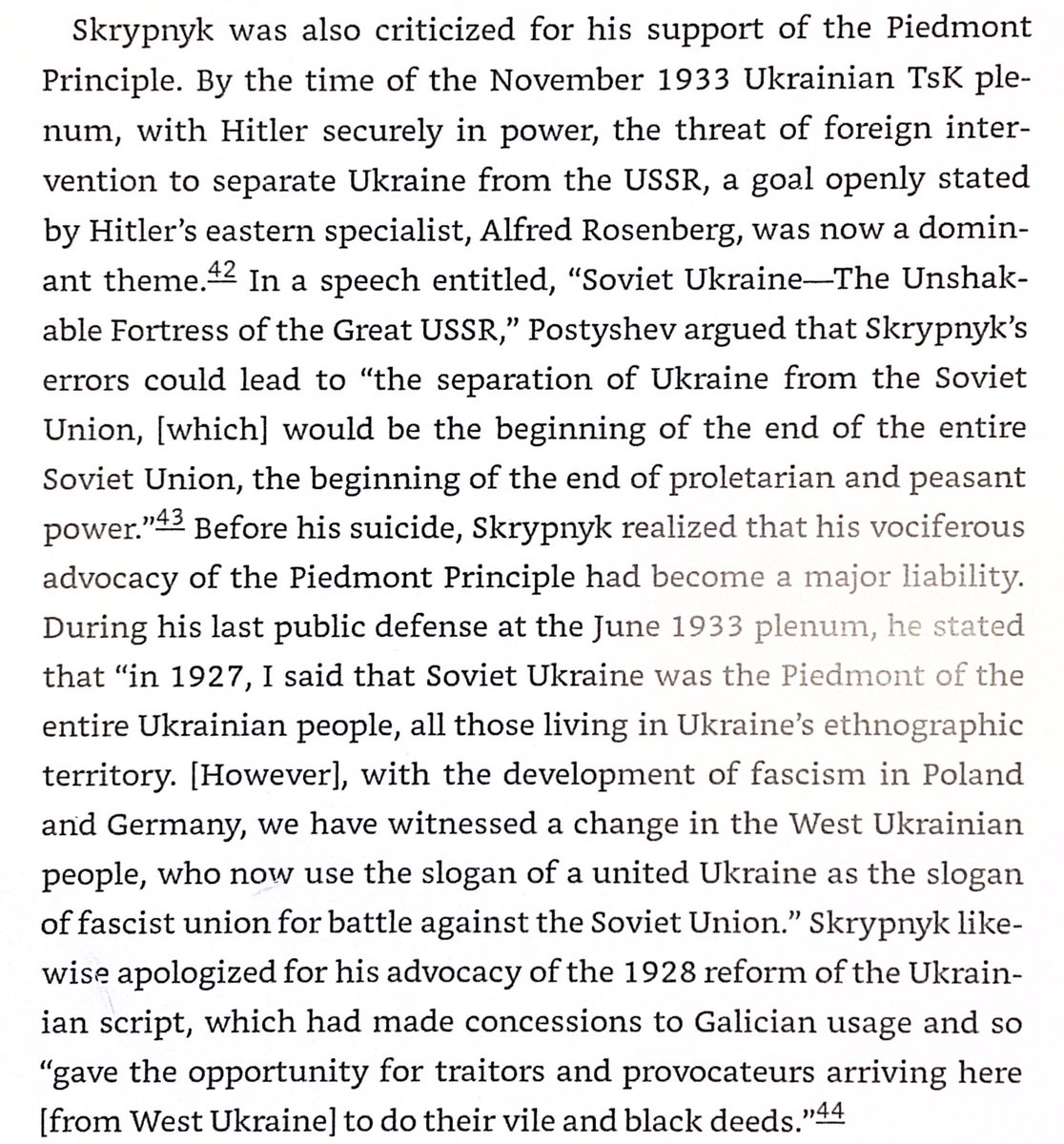 NS German international theorist Rosenberg’s support of an independent Ukraine severely undermined the position of Ukrainian national communists like Skrypnyk after 1933.