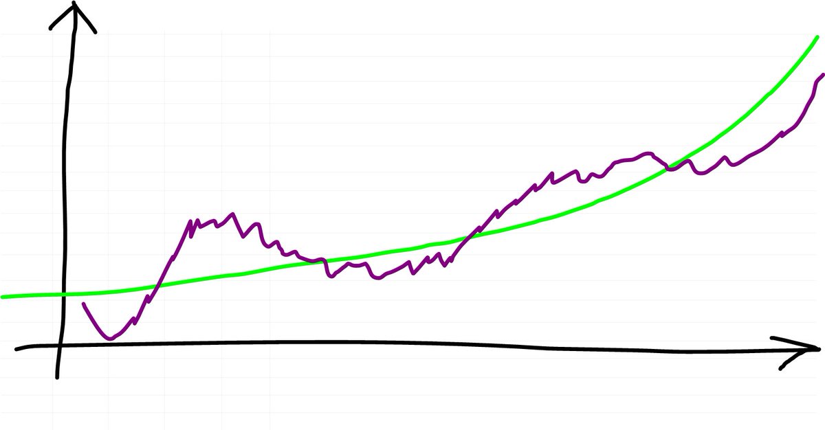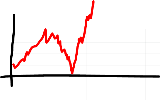 Either of the two processes shown above seem plausible to me, but something like this where crypto as a whole goes from a bear market bottom straight to new all-time-highs seems unlikely (cope?)