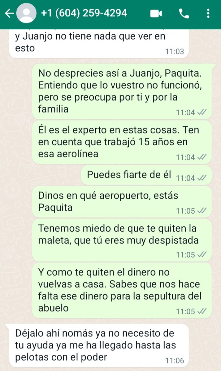 La tía Paquita piensa que puedo estar burlándome. Al fin y al cabo, ni siquiera me ha dicho en qué aeropuerto está.