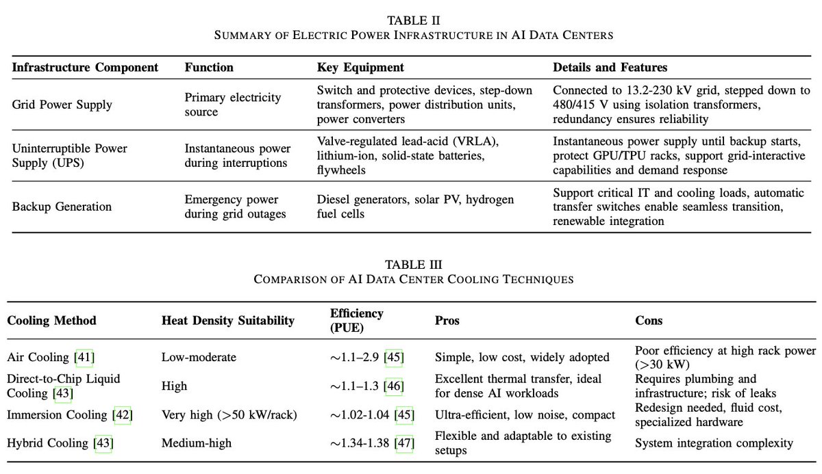 "According to the EPRI white paper, electricity consumption in a data center is mainly attributed to IT hardware equipment, which typically accounts for 40-50% of total load. Cooling systems represent the second-largest share, consuming approximately 30-40%, depending on the cooling technology and server rack density. The remaining 10-30% is from other supporting facilities, including lighting, office spaces, and monitoring and security systems. In AI data centers, the share of electricity consumed by IT equipment is higher and typically exceeds 60%, due to the adoption of high-density GPU/TPU racks and efficient liquid cooling systems."