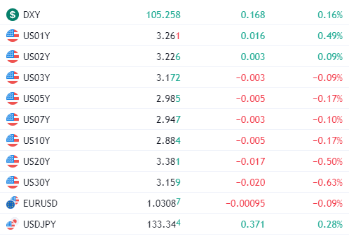 这就表明了资金如果想要提前离场也几乎不会出现本金的损失,尤其是对于很多大型的公司都会资金结构中购买美债。而从昨天美股开盘后到现在的走势来看,几乎看不到有资金进入美债的趋势,反而到现在美债的收益率还是在上升的状态。即便是两年期和三年期稍微有些下降,但相对上升数据来说就是杯水车薪。 Image