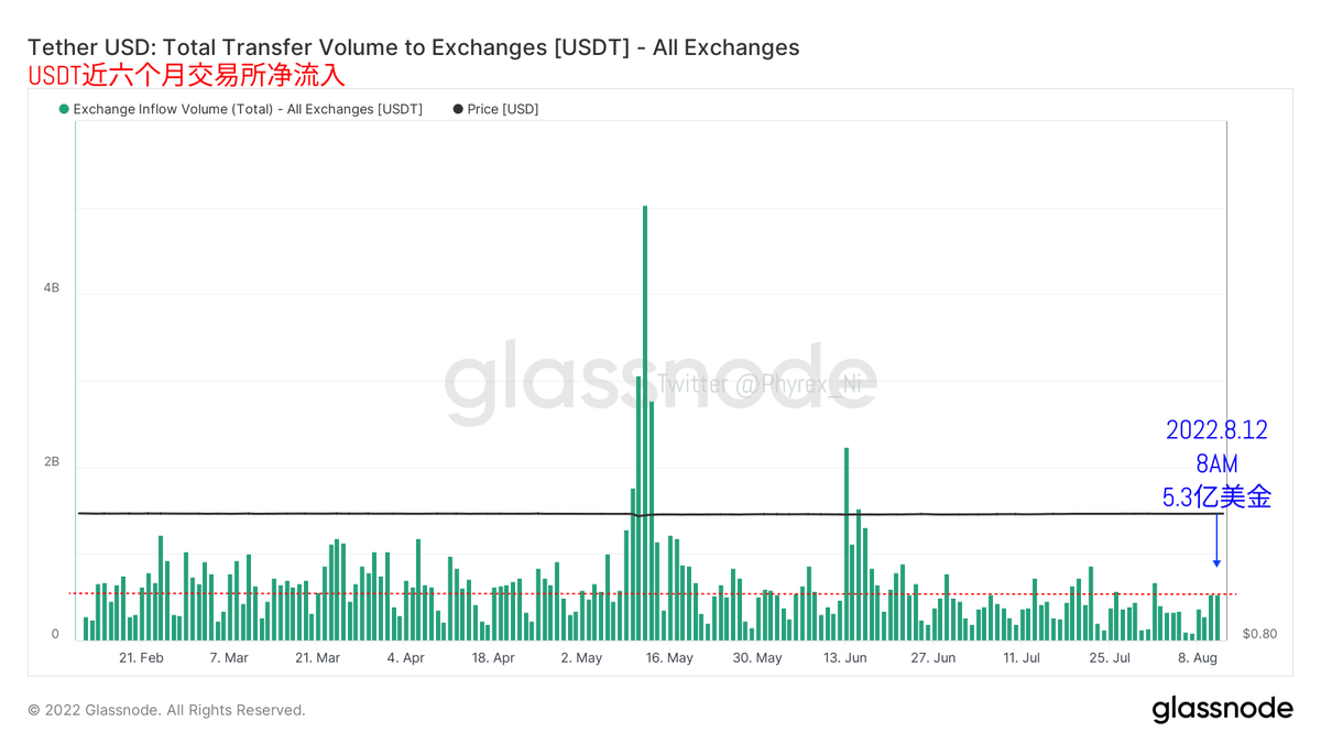 尤其对于币市来说,虽然 #Ethereum 的合并利好一直吸引了大量的关注和资金,但是存量资金毕竟是有限的,单纯只是存量资金博弈的话,对于价格的走势并没有任何的益处。从USDT本周的市值变化来看,确实是出现了增加的迹象,周内已经提升了大概4亿美金的市值,也就是有4亿美金换成了USDT。