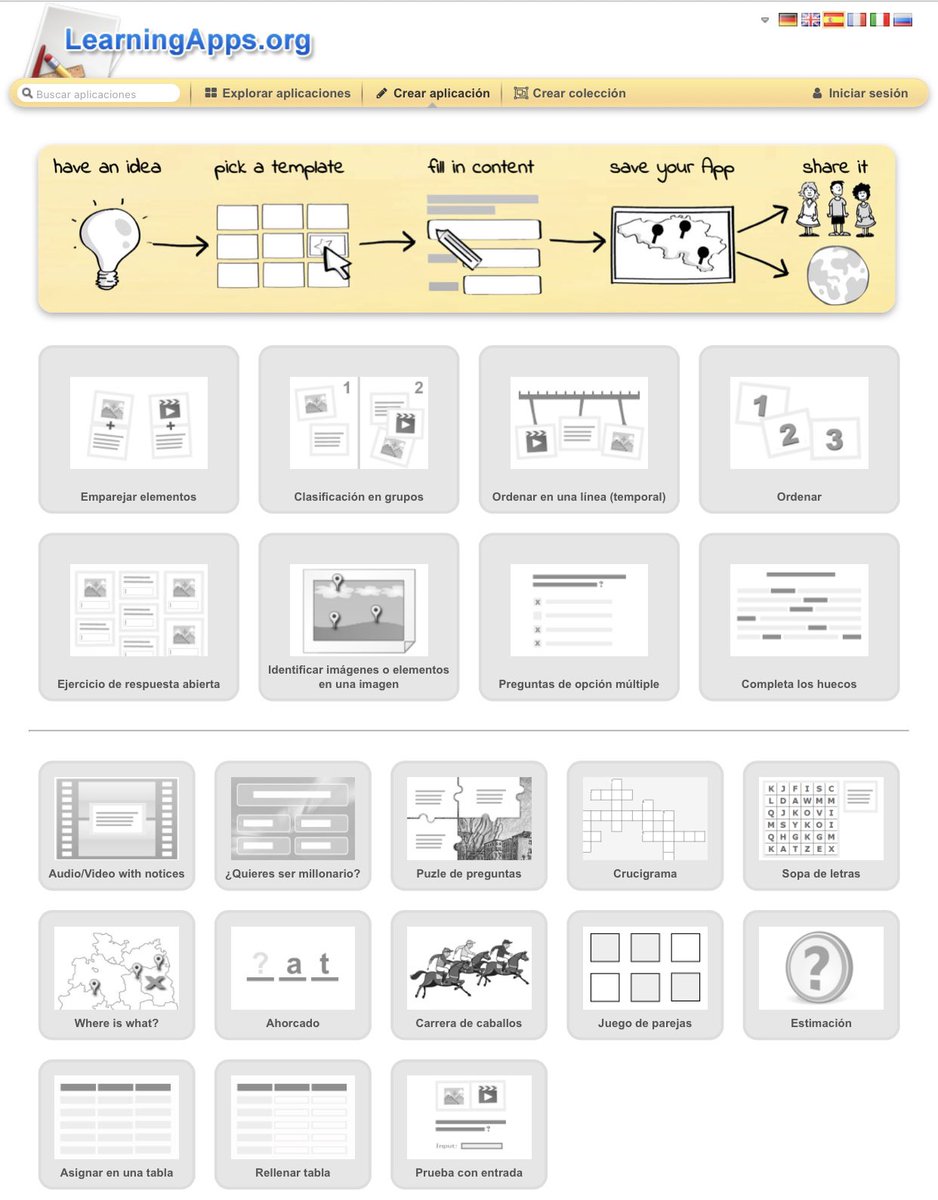 3️⃣ LearningApps - Nos ofrece un gran número de posibilidades y es muy sencillo crear actividades nuevas. Además, puedes utilizar las actividades creadas por otros.
