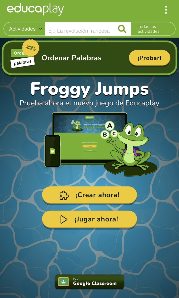 8️⃣ Educaplay - Las actividades que permite crear son sopas de letras, crucigramas, completar textos, diálogos, dictados, relacionar, etc. Además, cuenta con un repositorio con actividades realizadas por otras personas.