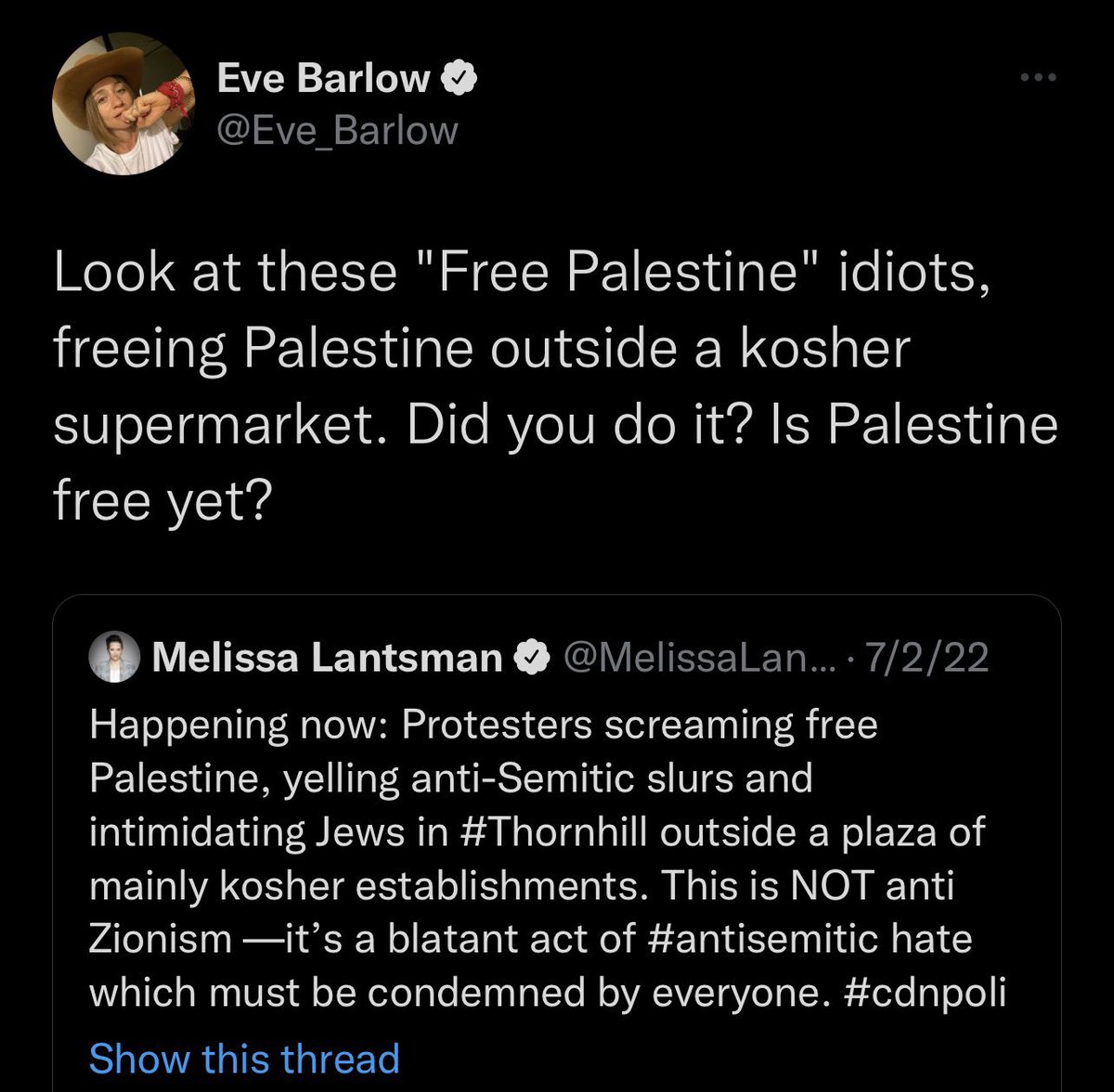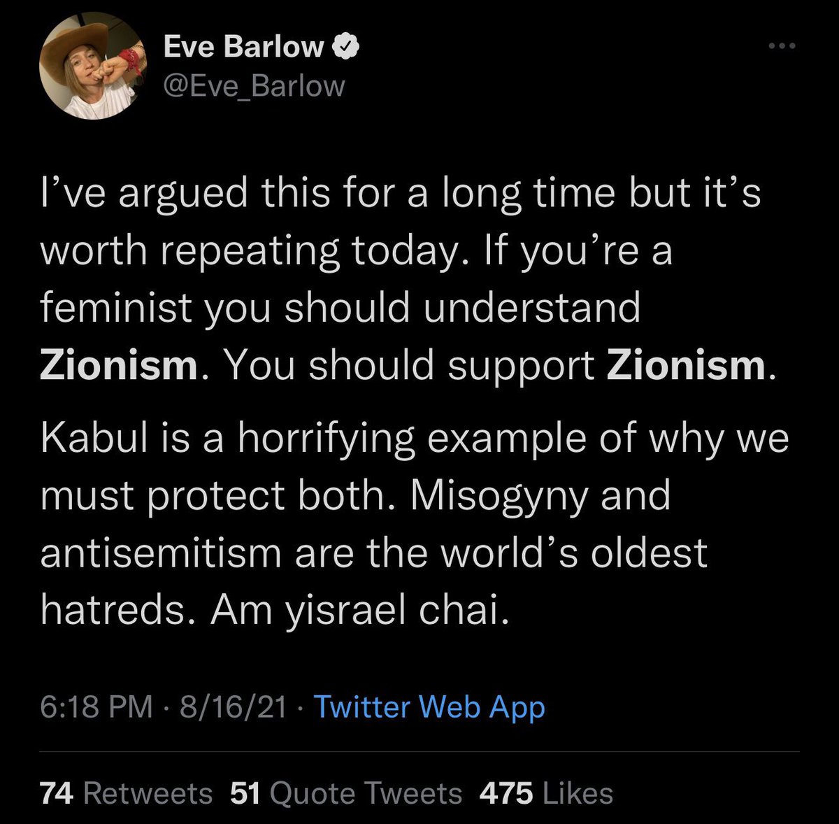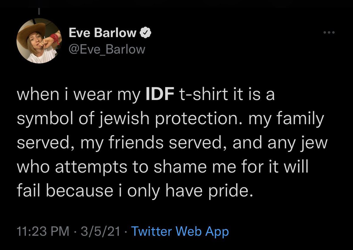 Eve Barlow’s main talking point besides johnny depp is of course us, the palestinian people. Her vile racist attacks on the #FreePalestine movement are constant and she prides herself in being a zionist and an IDF supporter.