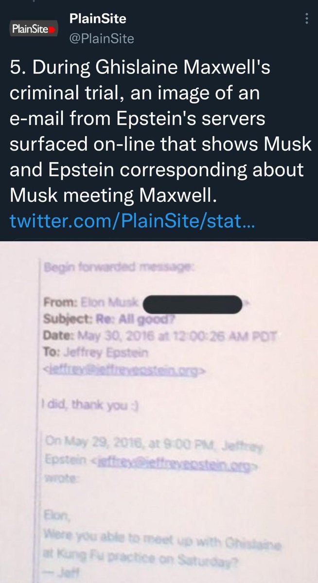 There has been numerous links that put Elon in the Epstein/Ghislaine ring (he denied all), however the most latest of which was an email that resurfaced during ghislaine’s criminal trial in that email elon and her plan for a meeting