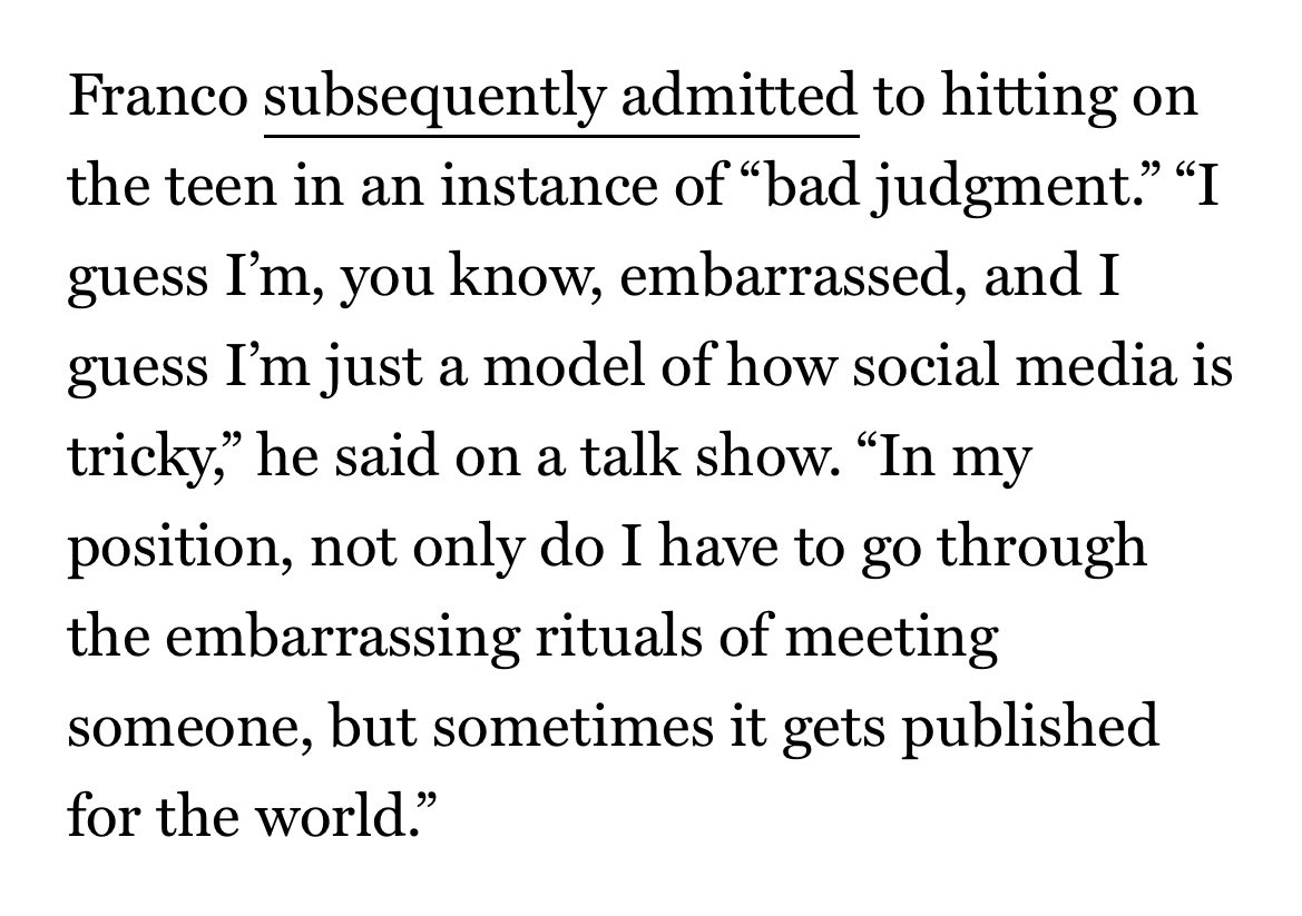 And rapist he is, James Franco sexually assaulted numerous female students at his acting school, many of which were underage.