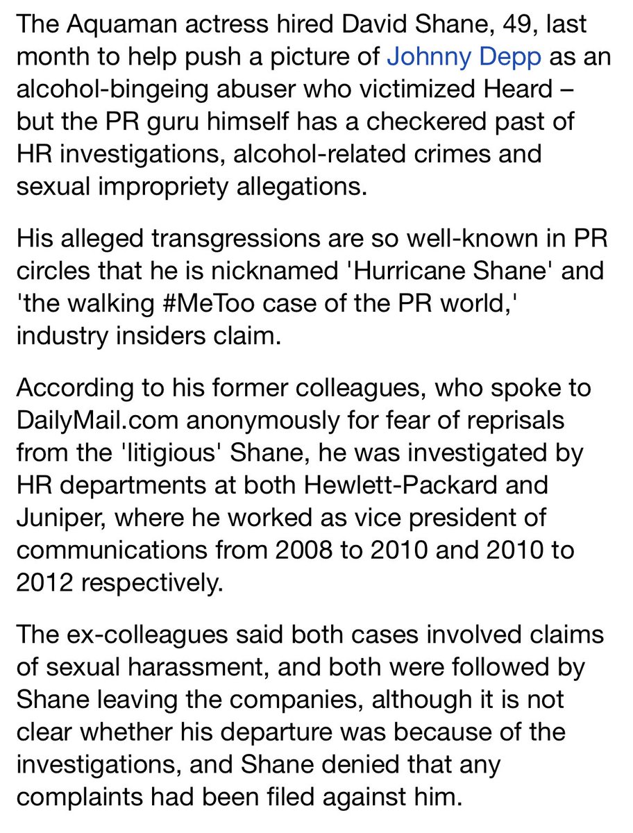🪡 David Shane - Amber’s PR Agent whom she hired mid trial to run a smear campaign against johnny is a well known predator and sexual abuser