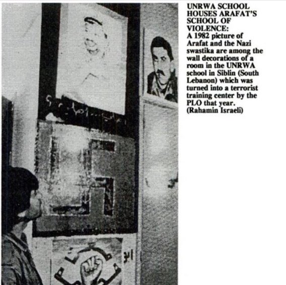 And these pictures of Arafat and Nazi symbolism at a UNRWA school in Lebanon 1982 show the continued spread of extremist ideology