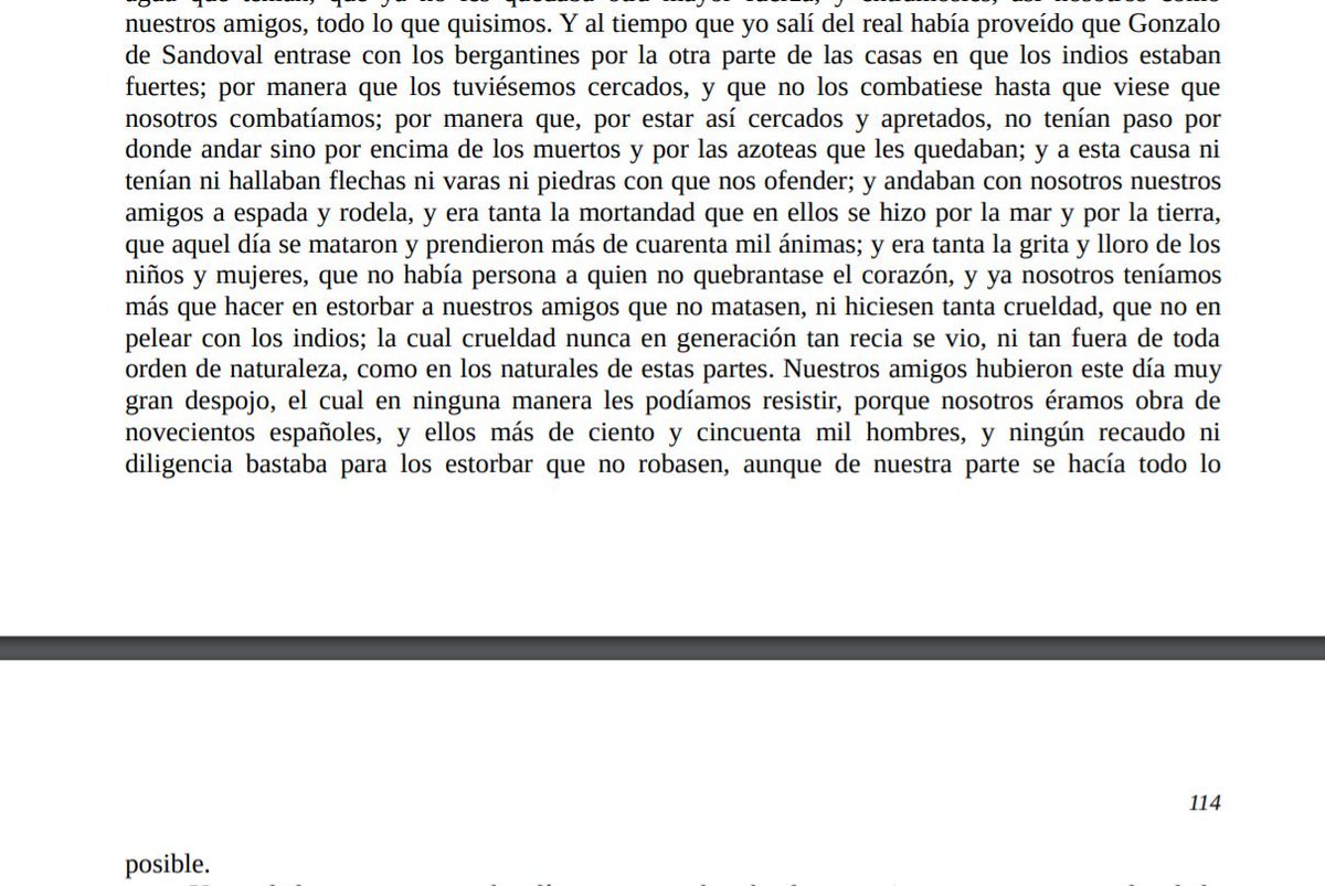 «…y así, preso este señor, luego en ese punto cesó la guerra, a la cual plugo a Dios nuestro Señor dar conclusión martes, día de San Hipólito, que fueron 13 de agosto de 1521 años».