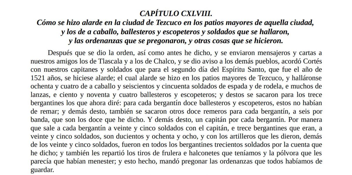 Hernán Cortés cuenta en su tercera carta de relación que hacia el final del sitio de Tenochtitlan, su ejército estaba compuesto por unos 900 españoles y más de 150.000 indígenas. Pero es muy posible que en realidad se refiriera al número inicial de españoles, muy similar.