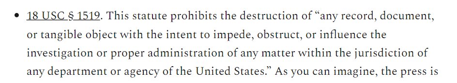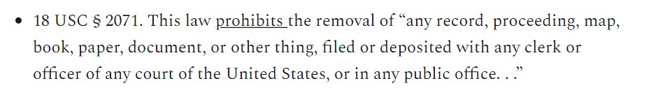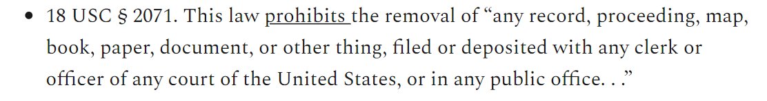 12/ And why is "Obstruction of Justice" part of this which deals with destruction NOT the keeping? My gut is that DOJ wants a crime to prosecute Trump with and it appears keeping Presidential Papers qualifies, but they also want to get him for "destroying" evidence but for what?