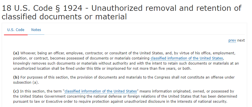 7/ And whether classified or not, the second statute cited, seems to make Trump taking anything that is considered "Presidential Papers" from White House, whether classified or not; whether the archivest (sp?) has a copy or not.