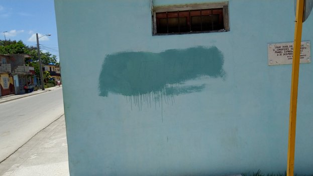O.a. in Bayamo aan de Avenida de los Mártires, waar de leuzen tegen de regering (zie foto boven) en de president door de gemeente snel werden verwijderd.