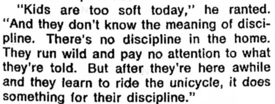 1977 "Kids are too soft tod...