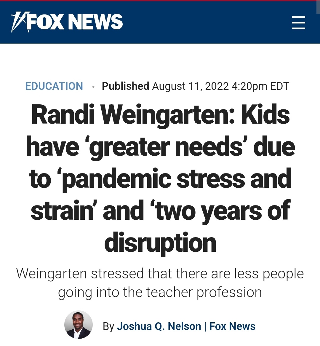 Randi Weingarten: "You have all of the pandemic stress and strain, particularly that kids are coming in with greater needs because of two years of disruption."
