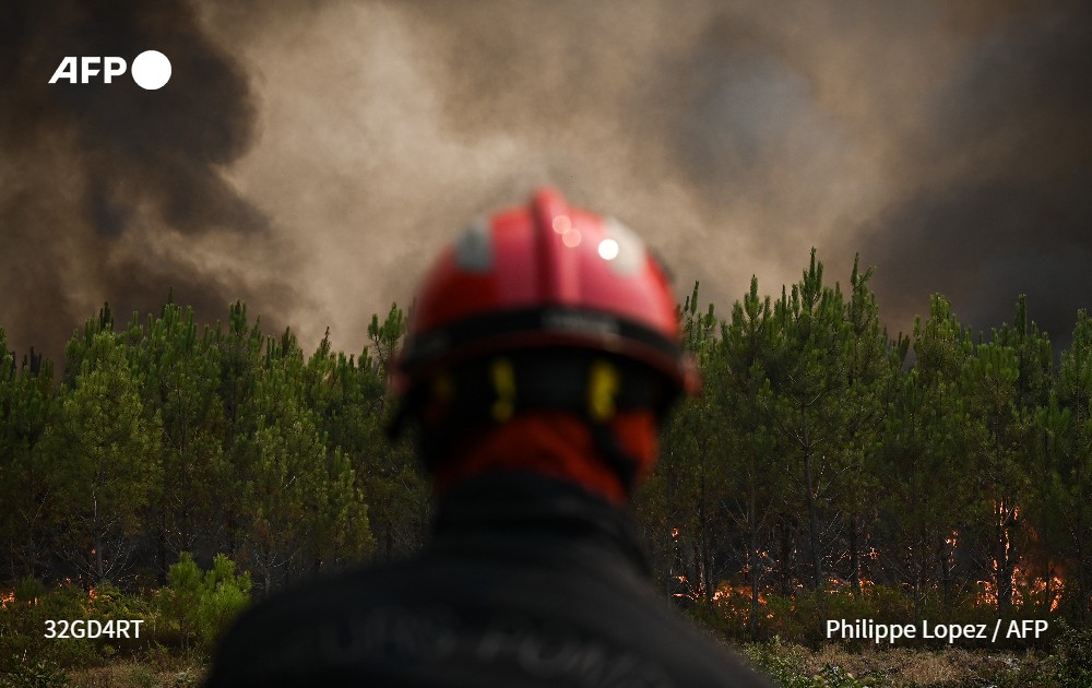 [A LA UNE 18H] Les pompiers poursuivaient samedi leur lutte contre les incendies notamment en Gironde, dans les Landes et en Bretagne, dans l'attente de l'arrivée en soirée d'orages et de pluies, sans savoir encore si elles aideront ou pas à l'extinction des feux #AFP 2/5