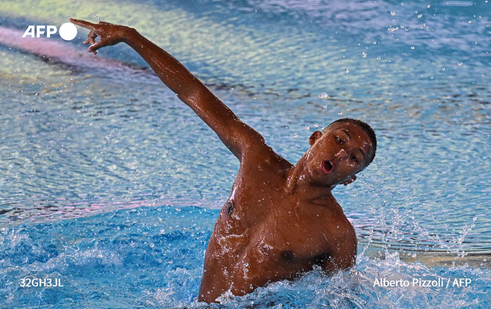 [A LA UNE 18H] Le Français Quentin Rakotomalala a remporté la médaille de bronze de l'épreuve de solo libre aux Championnats d'Europe de Rome, première grande compétition à organiser des épreuves de natation artistique réservées aux hommes #AFP 5/5