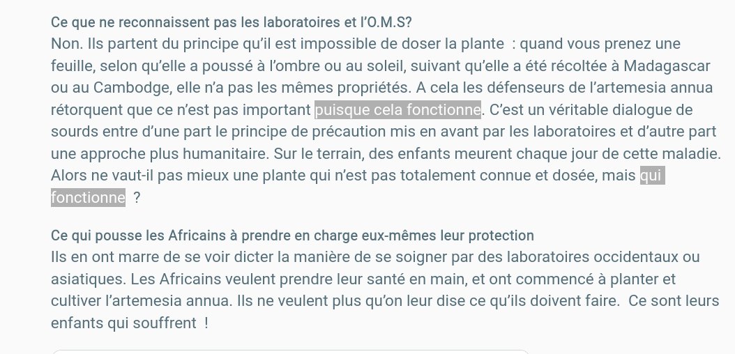 ...On et en train de priver la population d'un remède, alors qu'on sait que ÇA MARCHE !