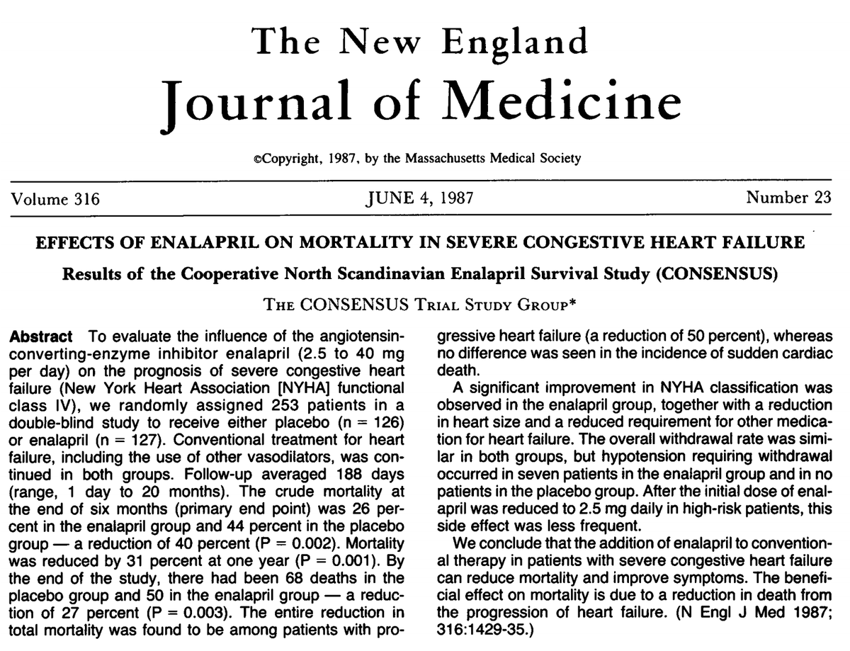 ⚠️En IC es diferente. Trabajos paradigmáticos que mostraron enormes reducciones de mortalidad en IC con FEYr con Enalapril cada 12 hs (CONSENSUS, SOLVD, V HeFT II)