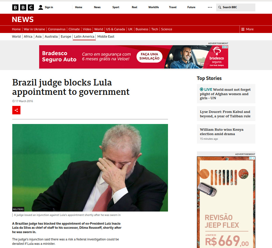 In 2016, US-backed Lava Jato judge Sergio Moro illegally wiretapped a phone conversation between Lula and Rousseff. In it, Lula expressed worries that his appointment would be spun as an attempt to avoid prosecution. Moro edited it to imply the opposite, and leaked it to Globo TV