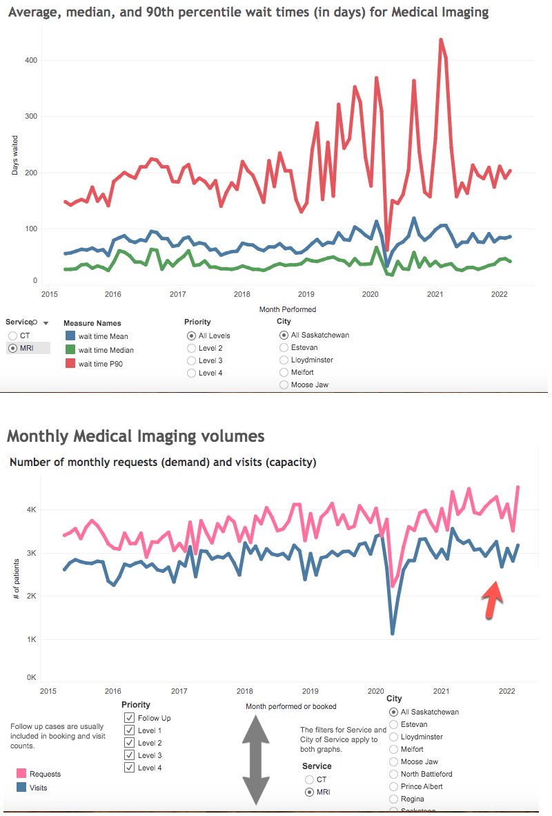 Pandemic protocols affected wait times for MRIs like it did for everything else, but until then, wait times for MRIs were flat while demand for the service increased. #skpoli