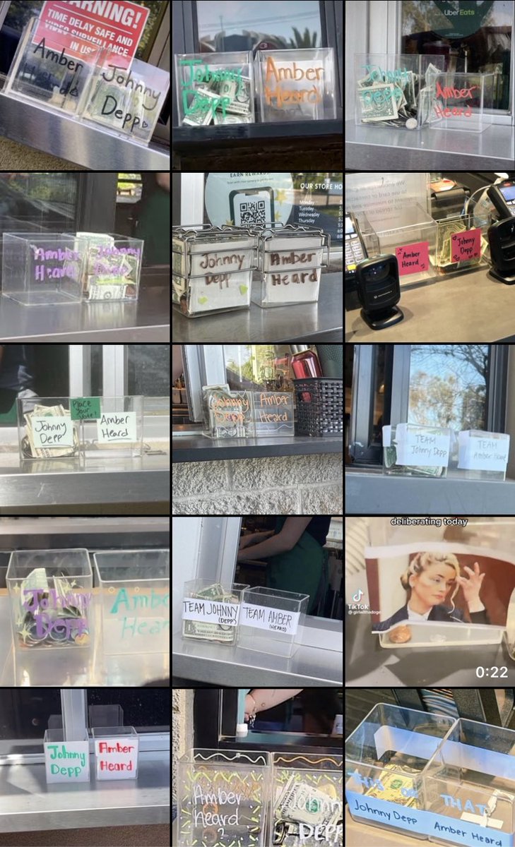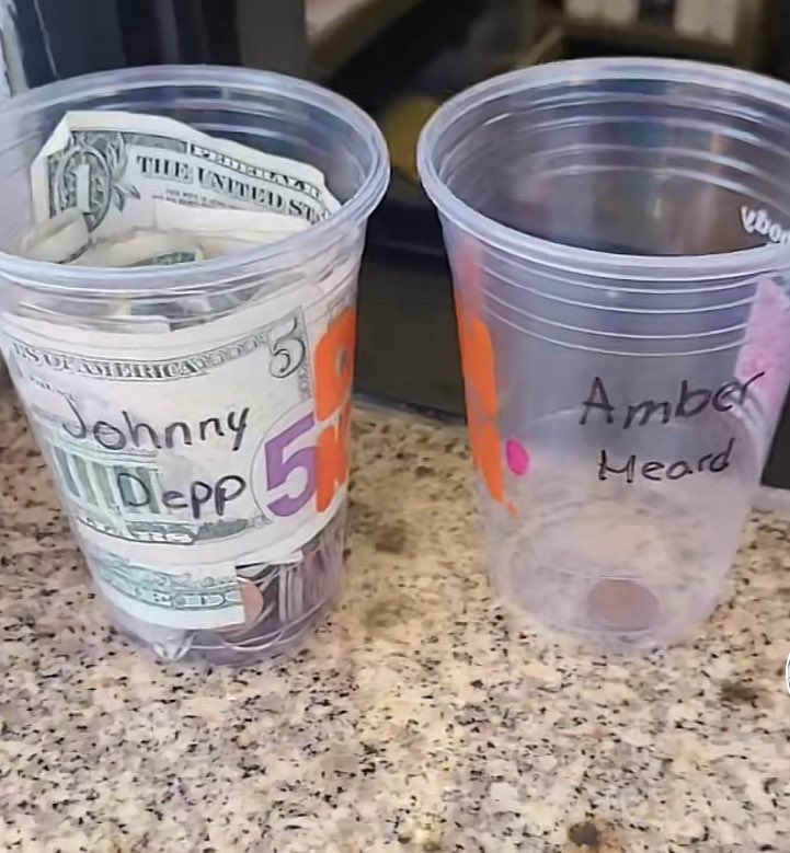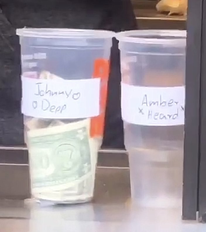 Starbucks stores all over the world placed tip jars labelled “Johnny Depp” and “Amber Heard”, encouraging their costumers to ‘vote’, usually decorating Depp’s jar with hearts and some even wrote “Justice for Johnny”.