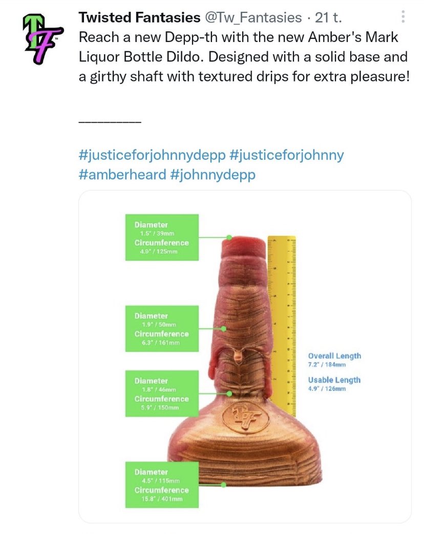An adult sex toy retailer called “Twisted Fantasies” created a liquor bottle shaped Dildo after Amber Heard’s rape.