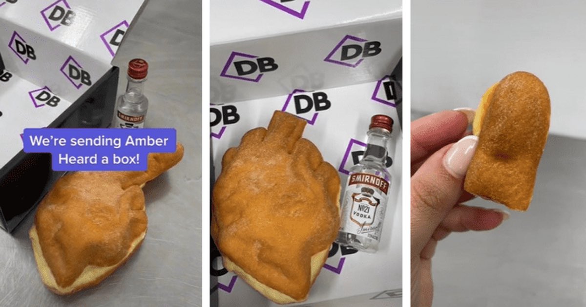 Australian bakery “Dessert Boxes” made a hand shaped cake for Amber. They cut the “finger” using a vodka bottle which they included in the box. The bakery said “We'll cut off the finger with a vodka bottle, throw that in for her, too”.