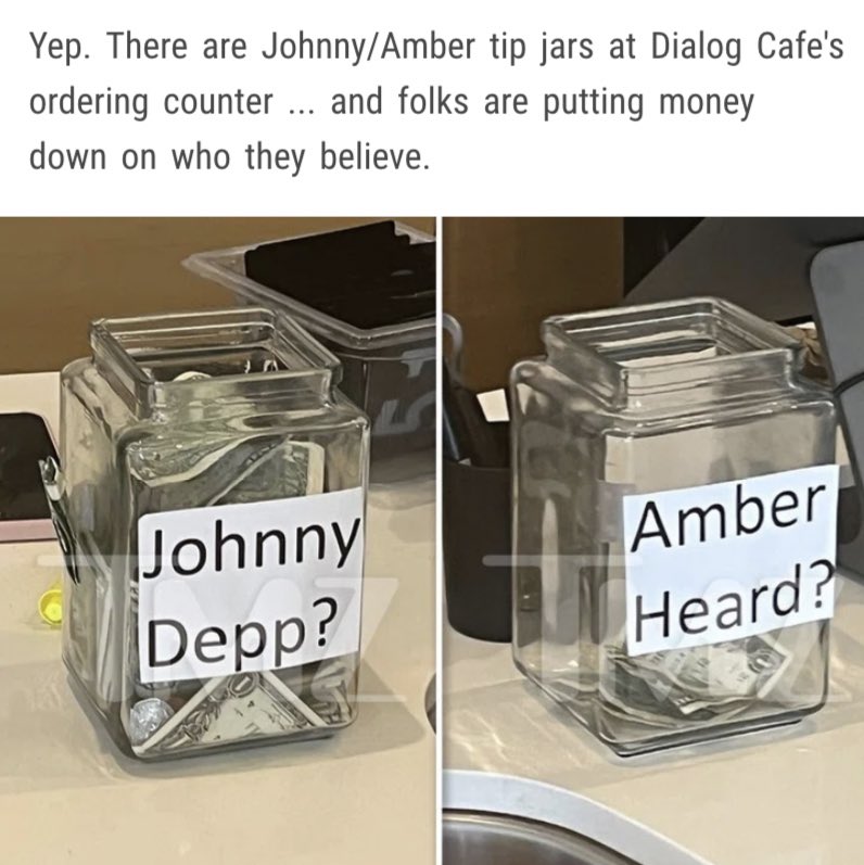 Multiple coffee shops and restaurants participated in the “Amber Heard” vs “Johnny Depp” tip jars.