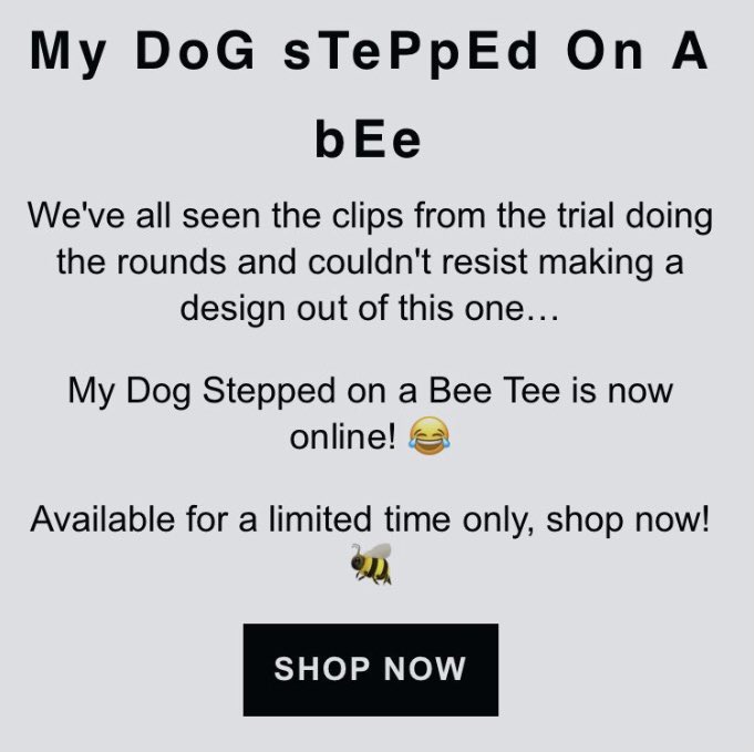 “Bad Monday”, a clothing brand, is selling a t-shirt writing “My Dog Stepped on a Bee”, which is part of Amber’s sexual assault testimony.