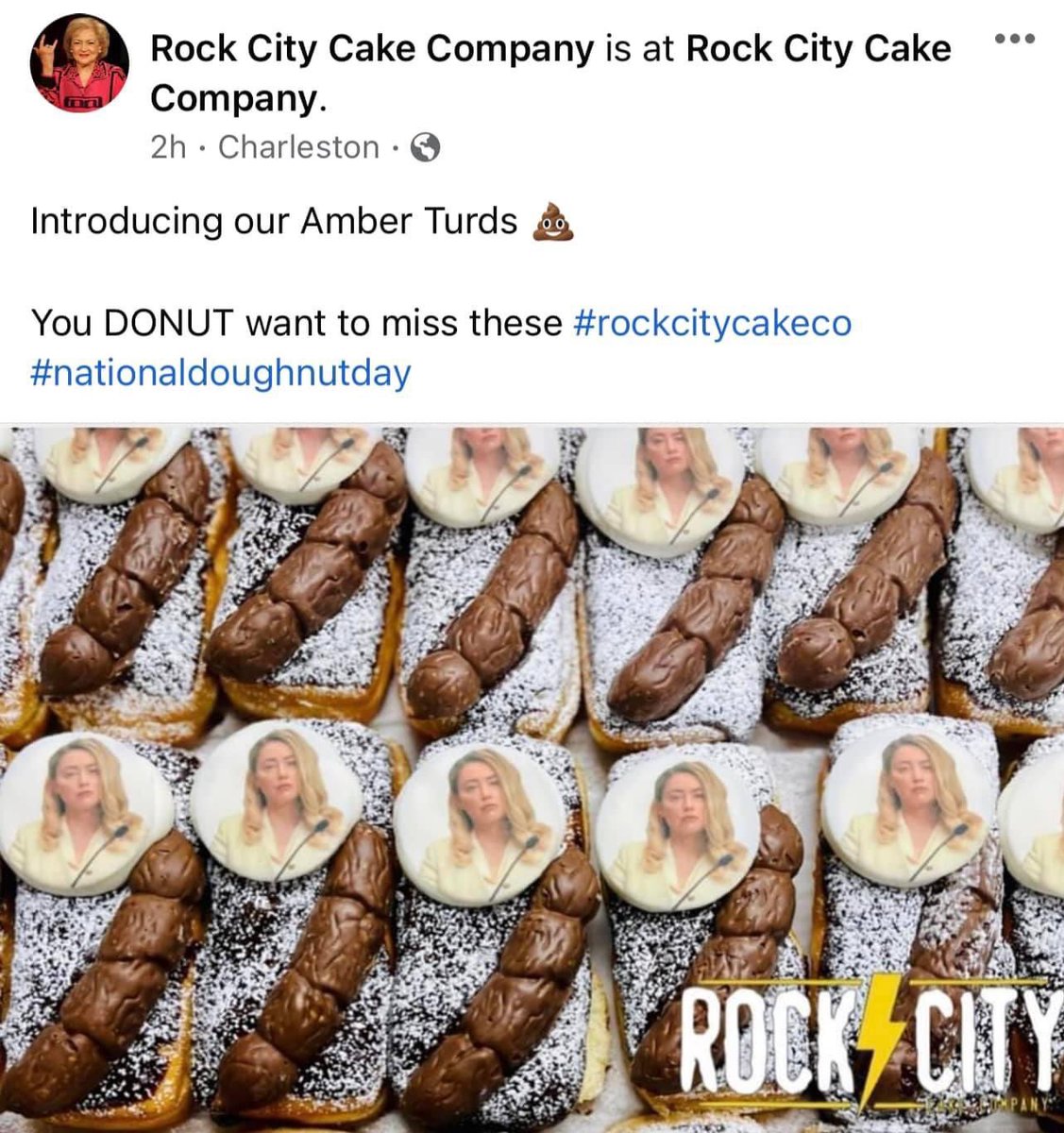 A cake shop called ‘Rock City Cake Company’, made some questionable pastries called “Amber Turds” with Amber Heard’s face on them.