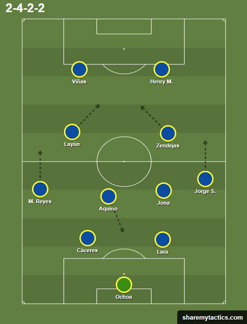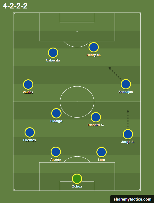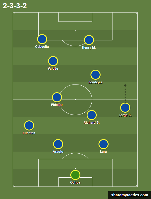 📌 Me gustaría dividir el análisis en dos: 1) La versión de Zendejas como ED con Jorge S. como lateral derecho. 2) La versión de Zendejas ED con Lara como lateral derecho.