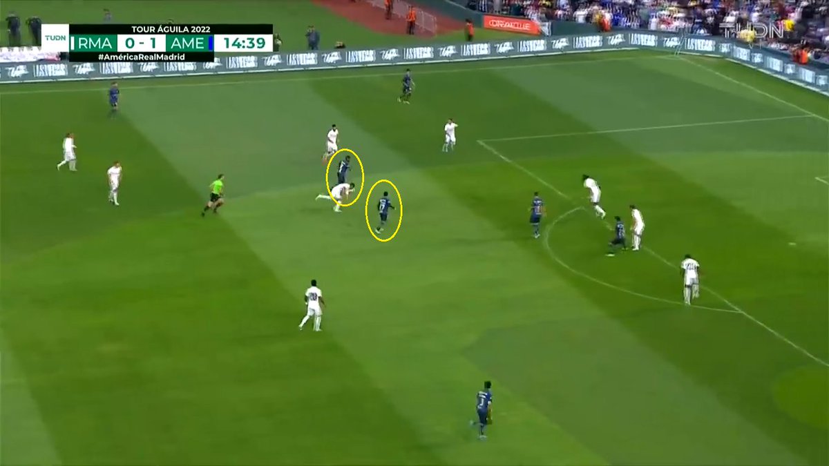 📌 El América del 'Tano' no suele caracterizarse por ir a presionar arriba, pero, cuando lo hace, el 17 es fundamental; su energía/ímpetu se contagian, como ocurrió vs. Pumas.